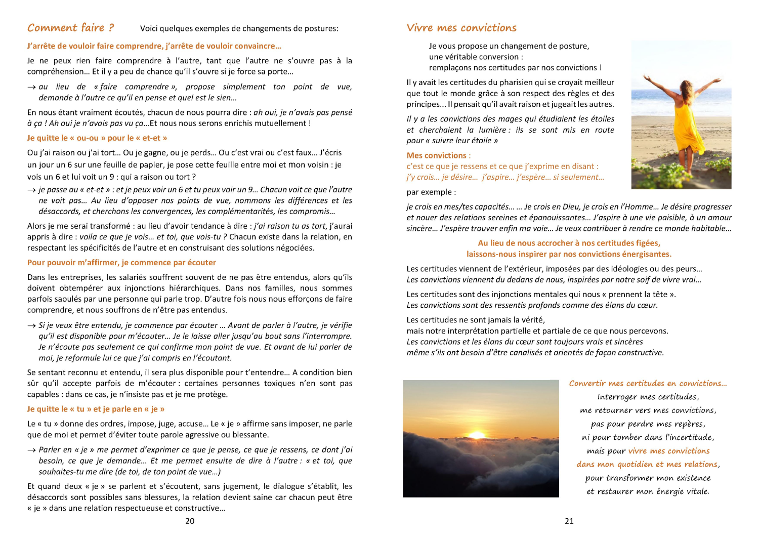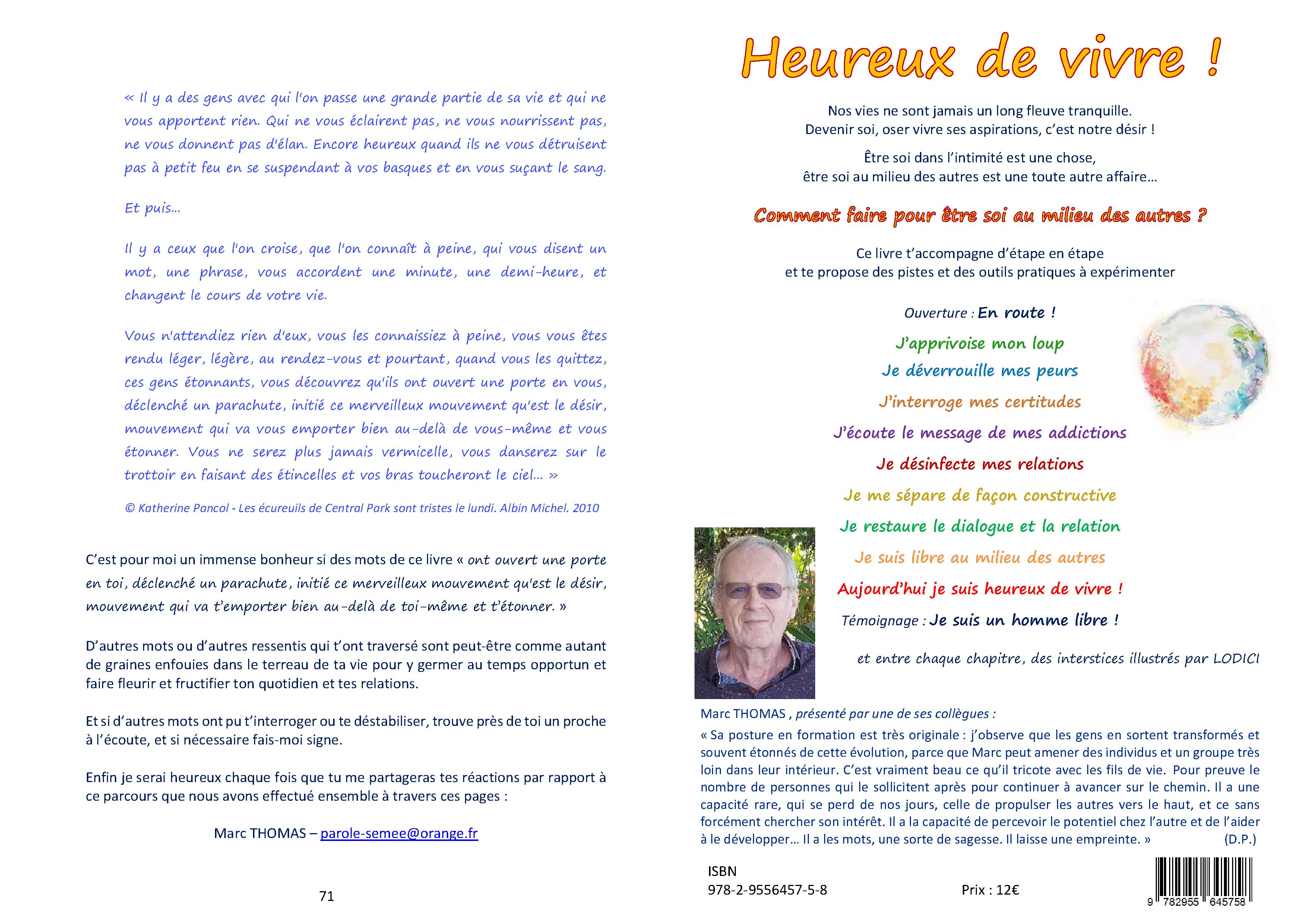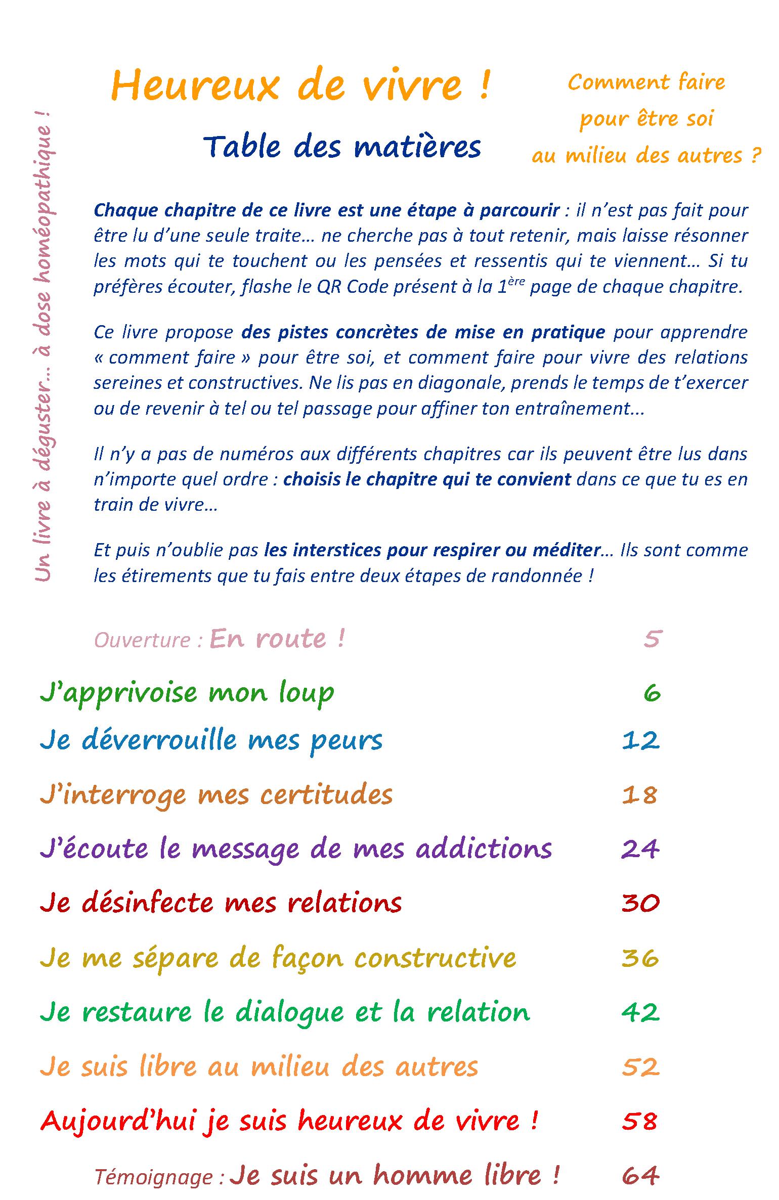 Ce livret part de nos difficultés à vivre au quotidien : perus, certitudes figées ou incertitudes, addictions, relations toxiques, honte... Il propose des chemins pour apprivoiser, déverrouiller, interroger, écouter, désinfecter, se séparer, se libérer... pour être heureux de vivre.