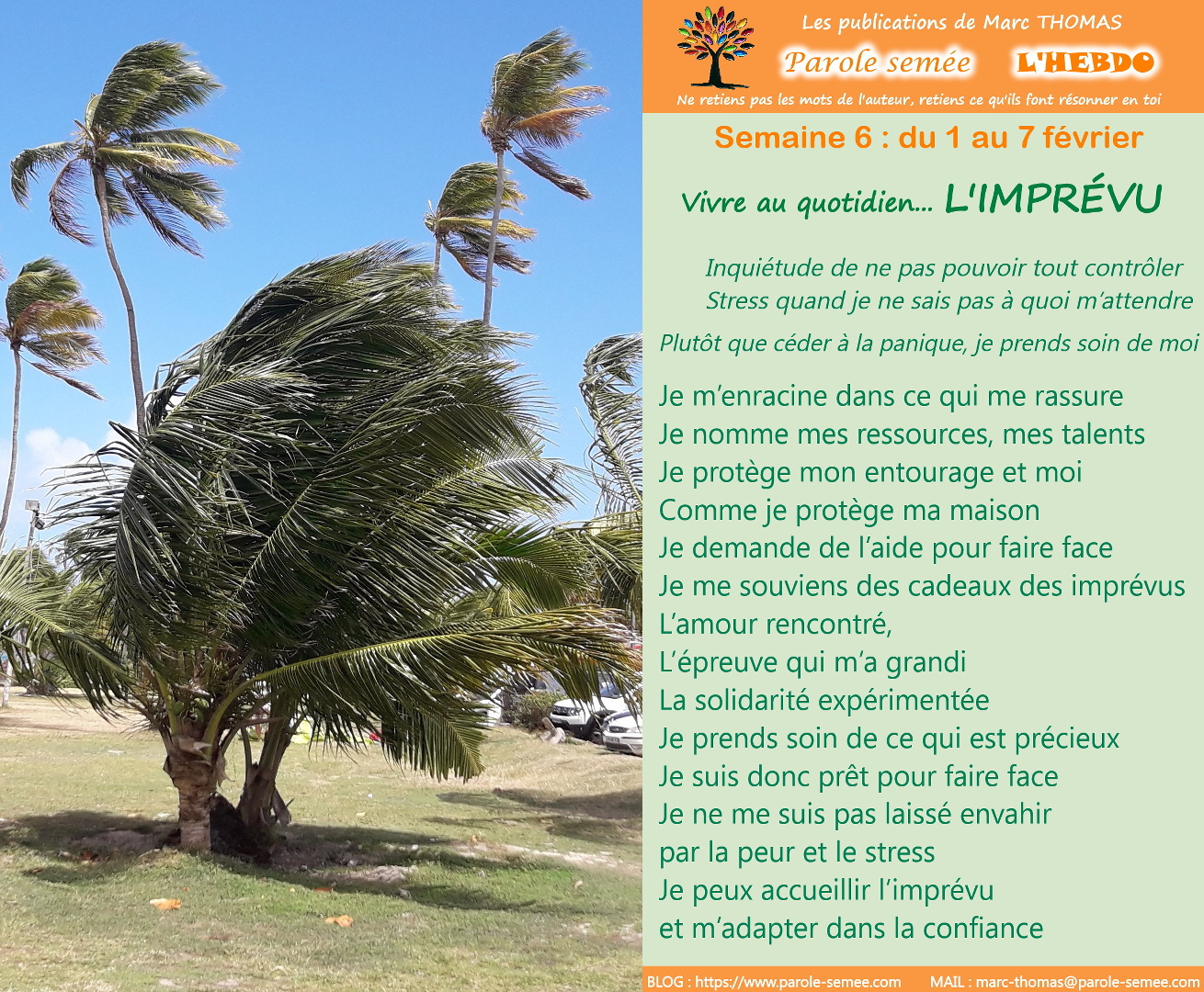 L'imprévuMarc THOMAS31 janv.1 min de lectureNoté NaN étoiles sur 5.Chaque semaine, UNE ATTITUDE À EXPÉRIMENTER pour BIEN VIVRE dans le monde tel qu'il est